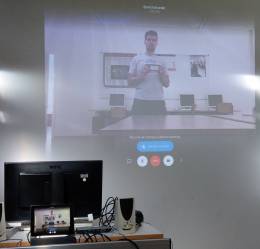 Jitsi - Lehrkraft zu Hause - Schüler im Klassenzimmer